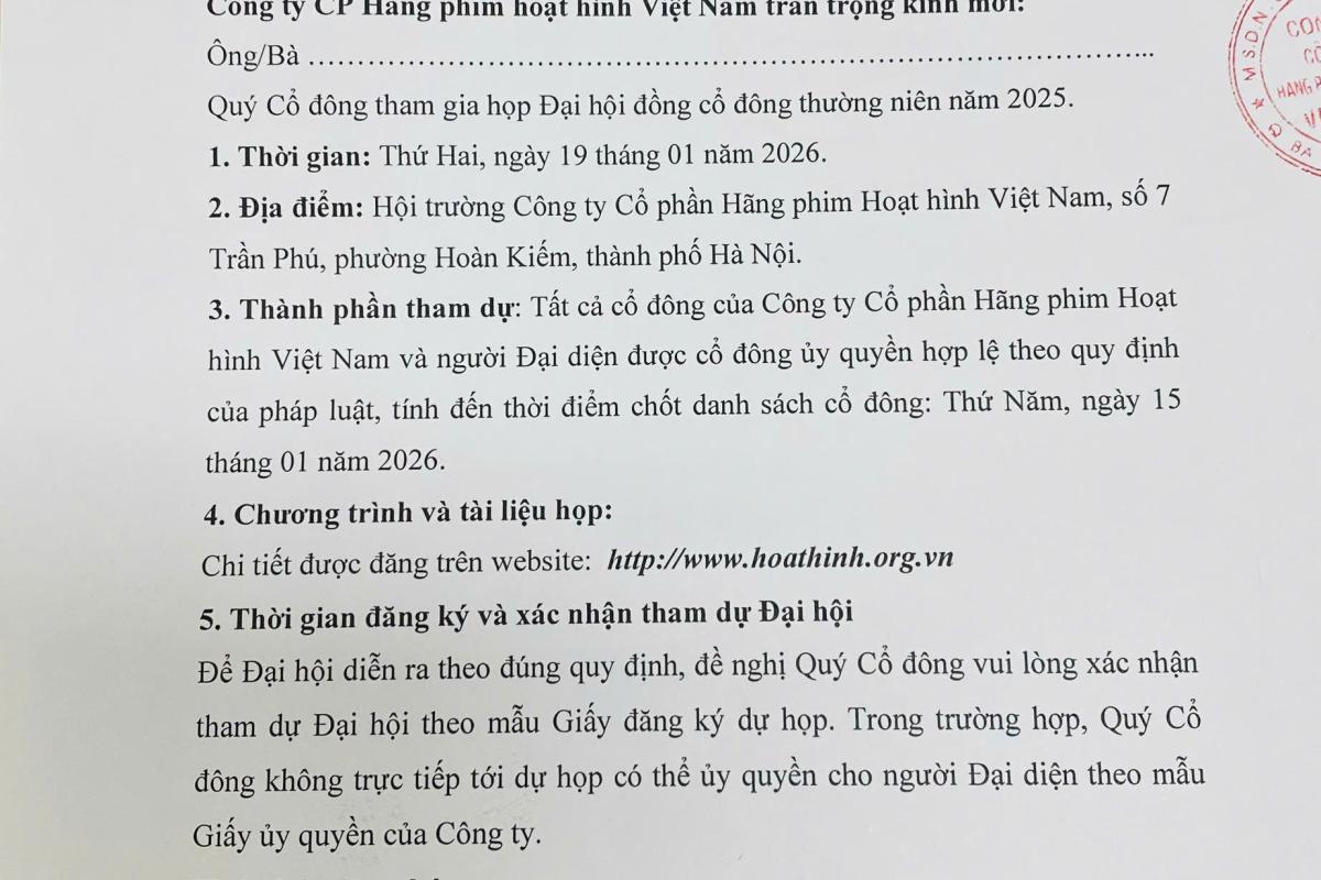 CÔNG TY MỜI HỌP ĐẠI HỘI CỔ ĐÔNG
