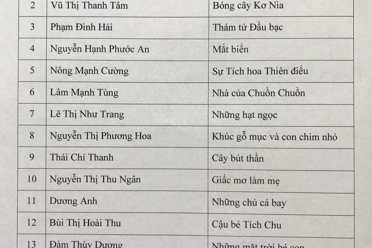 DANH SÁCH ĐỀ CƯƠNG VÀ CÁC TÁC GIẢ ĐƯỢC CHỌN THAM DỰ TRẠI SÁNG TÁC KỊCH BẢN PHIM HOẠT HÌNH ĐÀ LẠT THÁNG 10 NĂM 2019