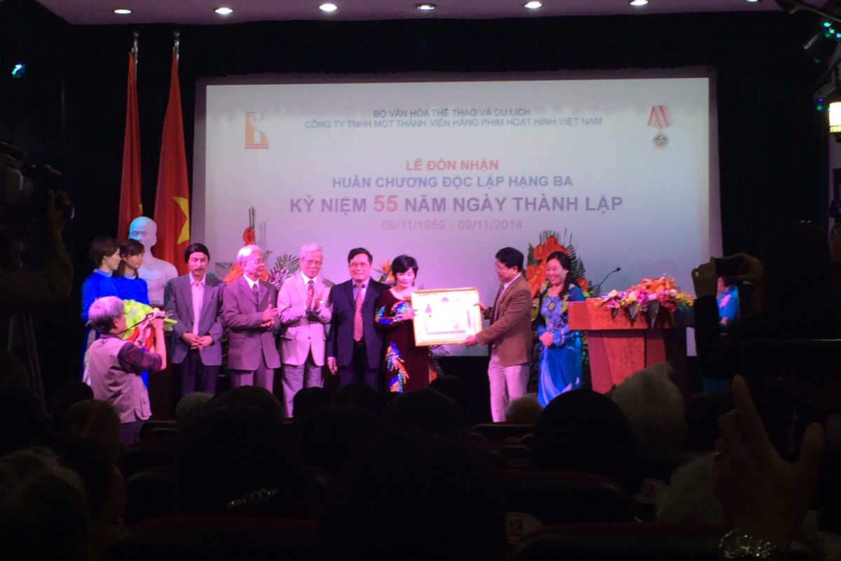 Sáng 7/11 tại Hà Nội, Công ty TNHH MTV Hãng phim Hoạt hình Việt Nam (HHVN) đã vinh dự đón nhận Huân chương Độc lập hạng ba và kỷ niệm 55 năm ngày thành lập (9/11/1959 – 9/11/2014).