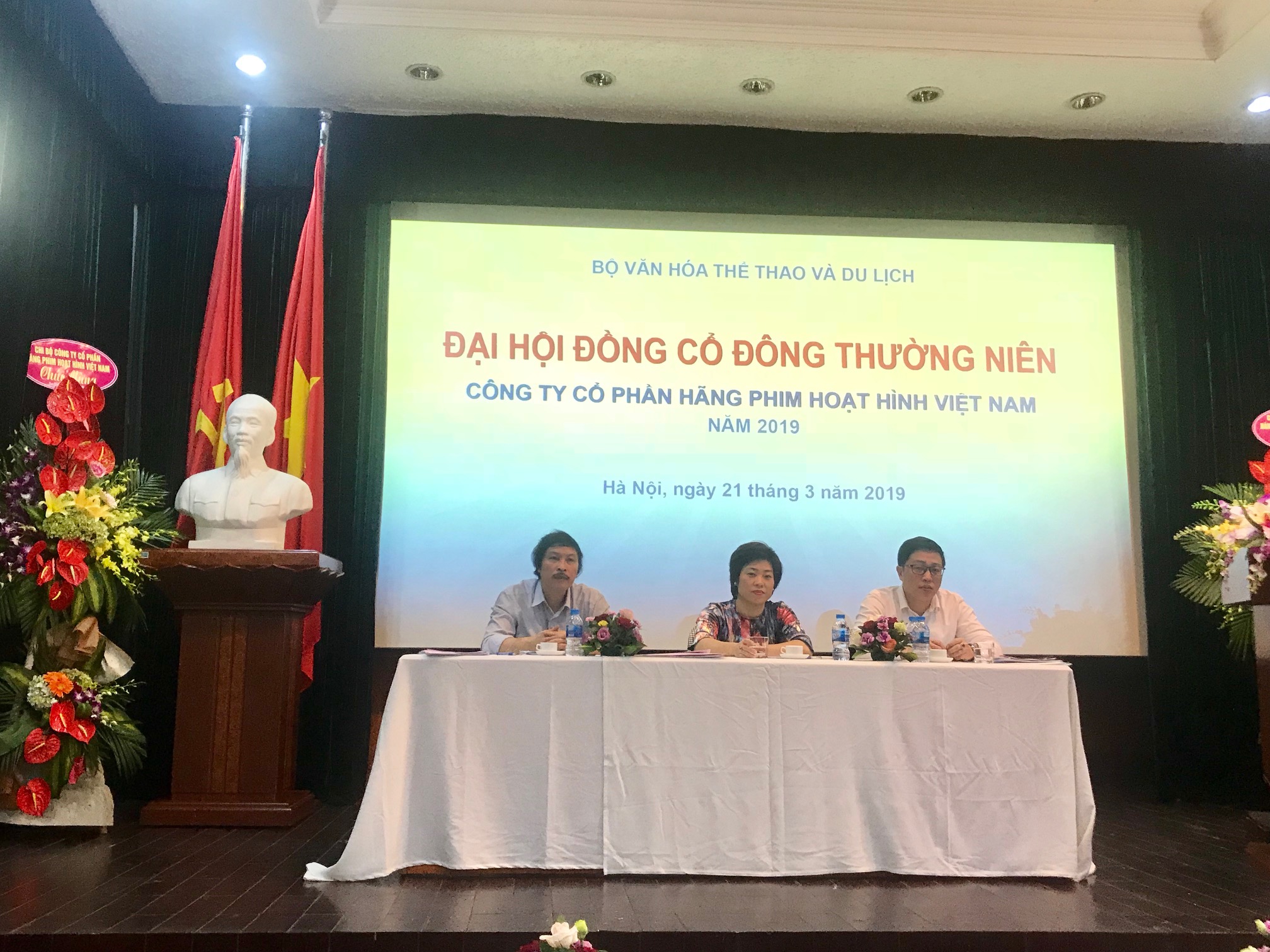 Sáng ngày 21/3/2019 tại Công ty Cổ phần Hãng phim Hoạt hình Việt Nam - số 7 - Trần Phú - Ba Đình - Hà Nội đã diễn ra phiên họp Đại hội đồng cổ đông thường niên của Công ty cổ phần Hãng phim Hoạt hình Việt Nam năm 2019. Tham dự  Đại hội có 79  cổ đông, đại diện theo ủy quyền của cổ đông, đại diện cho số cổ phần chiếm 99,502% vốn điều lệ của Công ty.